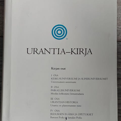 Myydään Urantia-kirja, pehmeäkantinen kirja sinisillä kansilla. Hengellistä ja filosofista kirjallisuutta etsiville lukijoille.