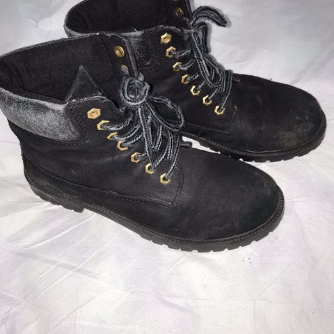 Väriltään beiget, joissa tummanruskea pehmuste (jonka väri hieman kulunut). Nauhakiinnitys edessä ja karkea kumipohja, joka tarjoaa pitoa. Sopivat arkeen ja ulkoiluun lapsille tai nuorille