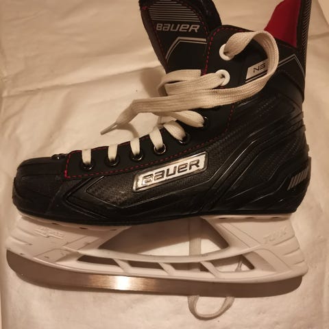 Paljon luistellut, mutta edelleen hyväkuntoiset ja ehjät Bauerin luistimet. Teroitusta saattaa kaivata.
