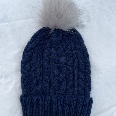Uusi, käyttämätön, lämmin neule pipo fleece vuorilla. Turkis tupsu.