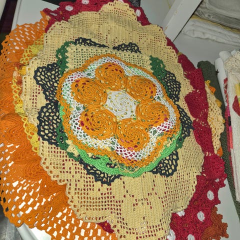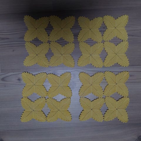 Pitsejä ja kankaita 9kpl. Olleet häissä tuolin selkänojan koristeena (peittämään tuoleja)