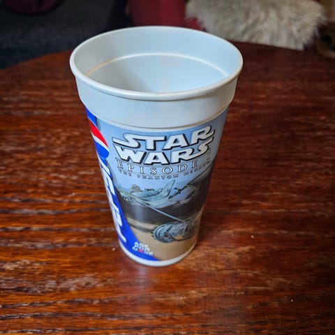 Pullo saatu leffalipun kylkiäisenä 90-luvulla. Pullo ehjä ja kaikinpuolin hyvässä kunnossa. Korkeus ilman pilliä 23 cm.