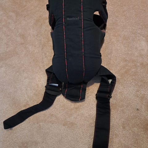 BabyBjörn kantoreppu vauvalle. Väri tummansininen, sisäpuolella monivärinen ruudullinen kangas. Kantoreppu on säädettävissä eri pituuksille, kokomerkinnöissä mainittu pituusvälit noin 53–90 cm. Malli sopii etukantoon, ja siinä on säädettävät olkahihnat ja kiinnityshihnat. Materiaali on pehmustettua kangasta. Kangas on vähän haalistunut.