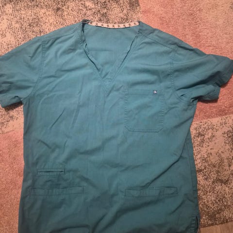 Myydään muutaman kerran koulun harkkatunneilla käytössä ollut M-kokoinen tummansininen hoitajanpaita. Molemmilla puolilla helmassa taskut (toisessa taskussa sisällä pienempi sisätasku) ja rinnassa yksi tasku. Naisten malli, v-kaula-aukko.