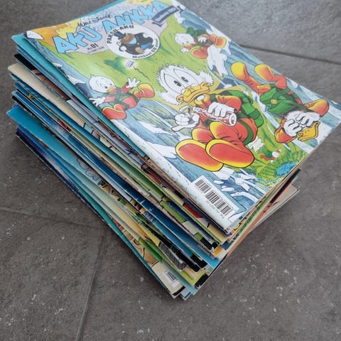 Myydään Aku Ankan 2011 vajaa vuosikerta. Sisältää vuosikerrasta nrot 1-37 eli sisältää 40 lehteä sillä 3 ensimmäsessä numerossa extralehdet. Puuttuu siis 15 lehteä; nro:t 38-52. Kunto hyvä. Osoitetiedot takakansista yliviivattu tussilla. Nouto tai postitus.