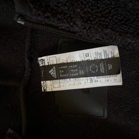 Adidas talvitakki naisten mallia, koko L. Väri musta. Materiaali pääosin polyesteriä. Edessä vetoketjukiinnitys ja sivutaskut. Takissa on toppaus ja pystykaulus. Selkäpuolella ja sivuissa näkyvät Adidaksen tunnusomaiset raidat sekä rintapuolella logo.