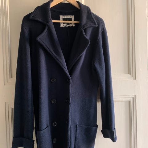 Indigonsininen jakku jacquardkankaasta