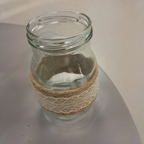 Läpinäkyvät lasipullot, joissa kaulassa valkoinen pitsinauha. Sopivat esimerkiksi pienten kukkien, kynttilöiden tai muiden koristeiden esillepanoon. Myydään kuvien mukaisina. Käytetty hääjuhlassa. 1euro/kpl.