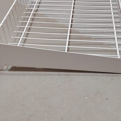 Veken lankku avohylly. Puoli vuotta vanha, virheettömässä kunnossa. Hyllyjen kantavuus 15kg. Lisätietoja veken sivuilta. Hyllyt maalattu valkoiseksi.