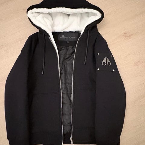 Takissa on paksu turkisreunuksellinen huppu, ikoninen Moose Knuckles -metallilogo hihassa sekä laadukkaat vetoketjut ja viimeistely. Mukana Moose Knucklesin autentikointilappu, jonka koodin voi tarkistaa valmistajan sivulla (mooseknucklescanada.com), joten aitous on helppo varmistaa.