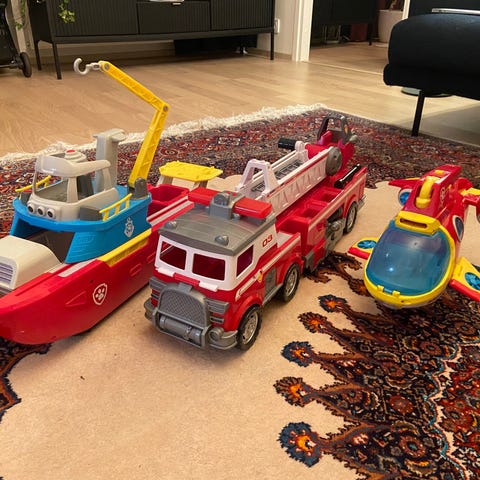 Myydään Ryhmä Hau setti, sisältää yli 50 osaa. Paloauto pitää ääntä nappeja painamalla ja paloauton pituus on noin 62cm.