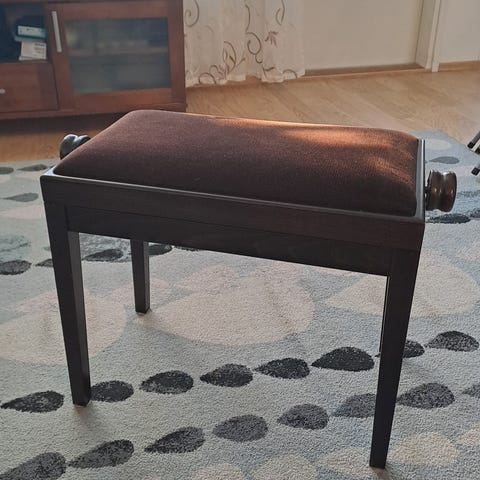 Kokopuinen, tukeva pianopenkki/pianotuoli. Istuin veluuria. Säädettävä istuinkorkeus 45-57 cm. Uusi ja virheetön, vain kasattu. Saatu lahjaksi, mutta meille tarpeeton.
