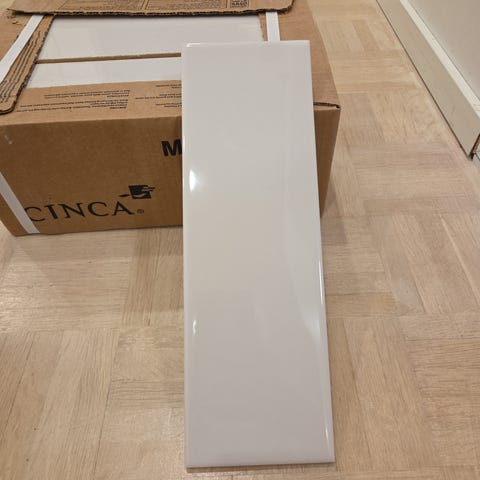 Myydään puolikas laatikko Pukkila Harmony lasitettu 9,7X29,7cm Pearl tasapintainen kaakeli laattaa. Sävy on vihertävän beige.