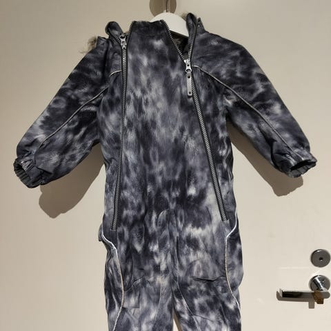 Ihana ja erittäin hyväkuntoinen Molon toppapuku toppatohveleilla, jotka saa pukuun neppareilla kiinni. Yhdessä kuvassa näkyy tossun pohja. Eli ollut erittäin vähäisellä käytöllä vaunuissa.