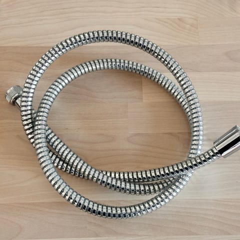 2 kpl UUSIA käyttämättömiä muovisia kromin värisiä suihkuletkuja, pituus 150 cm.