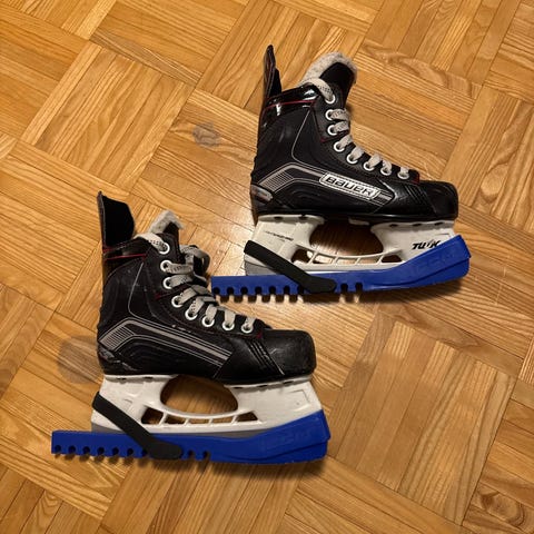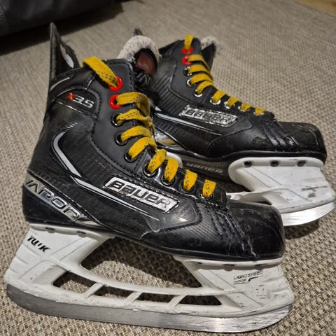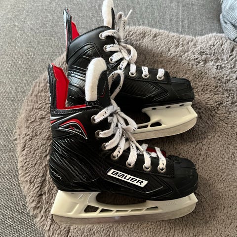 Bauer Vapor X5 Pro jääkiekkoluistimet lapsille. Koko YTH12,5D eli on normi lestinen,euro 31,5. Väri musta/punainen valkoisella teräkiskolla. Malli on suunniteltu jääkiekkoon ja tarjoaa tukevan nilkkatuen sekä kovakantisen rakenteen. Sisäosa on pehmustettu ja nauhoitus punaisilla nauhoilla. Soveltuu lasten jääkiekkoharjoitteluun ja luisteluun kaukalossa tai jäähalleissa.