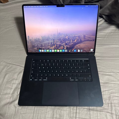 Myydään hyvin vähän käytetty Apple 15 tuuman MacBook Air M3 sirulla. Mukana 256 GB SSD ja 16 GB muistia. Akun kunto on 97% uuteen verrattuna. Huomaa, että näppäimistöasettelu on saksalainen.