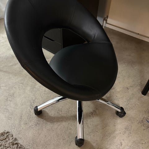 Pyörillä varustettu säädettävä selkänojaton tuoli.