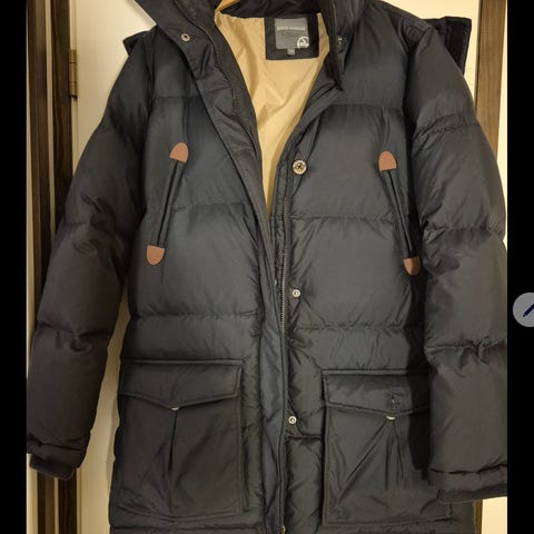 Hupullinen ahkka gold untuvatakki. Hupun karva puuttuu ja vyö ei ole alkuperäinen. Koko on 50, mutta en usko että on ihan niin suuri. Itse olen kokoa 42 ja on hiukan reilu. Eli ehkä menee 44-46. Lämmin takki, hyvä kunto.