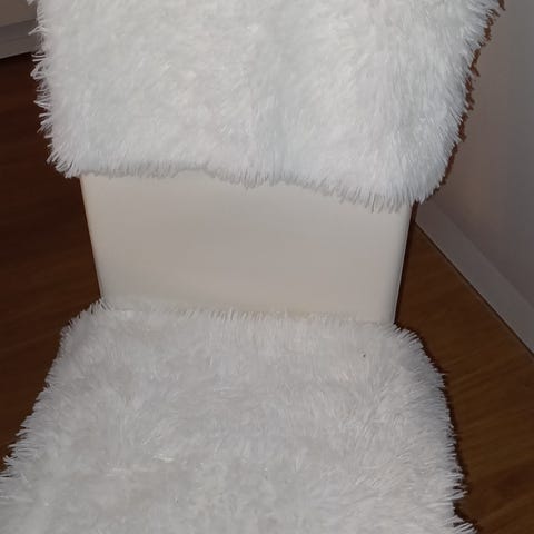 Pehmeä, aavistuksen paksumpi materiaali. Ei tietoa mitä materiaalia, ehkä itsetehdyt (ei lappua). Sisään sopii tyynynä varmaan esim. paksu 40cm tai maksimissaan tosi pehmeä 50cm tyyny. Vetoketjut ihan napakat. Olleet käytössä joskus, mutta kunnossa ei moitetta.