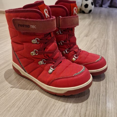 ReimaTec Laplander lasten talvisaappaat, koko 37, sisämitta 24.5 cm. Unisex-malli. Väritys beigeharmaa ja keltainen, tummat vahvikkeet alaosassa. Vaalean alareunan kumiosassa hiukan tummentumia. Korkea varsi, nauhakiristys edessä ja tukevat Vibram kumipohjat, joissa karkea kuviointi. Sopivat kylmään säähän ja ulkoiluun lapsille ja nuorille, joiden kengänkoko on 37.