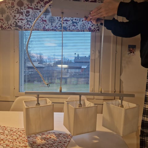 Myydään kattovalaisin, jonka korkeutta voi säätää hissisysteemillä.