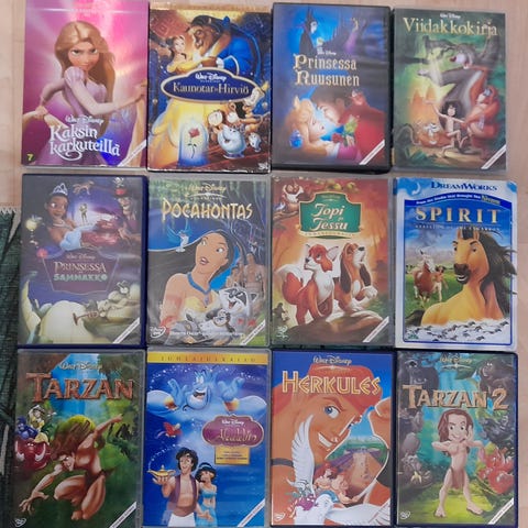1e/kpl lasten elokuvia. Kaikki toimii moitteettomasti. Postitus tai nouto