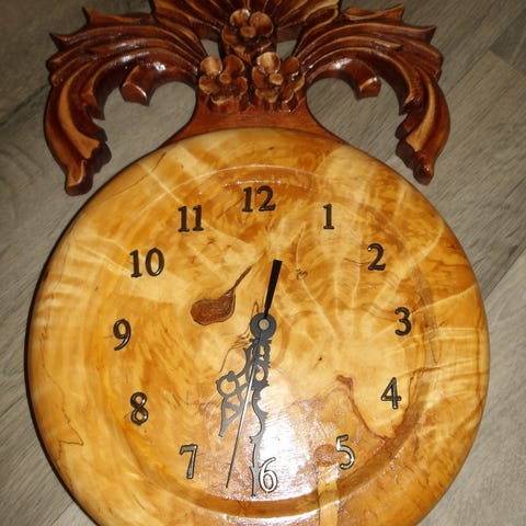 Paksusta visakoivusta valmistettu seinäkello