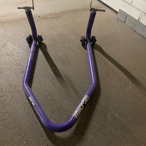 Moottoripyörän etupukki. Soveltuu moottoripyörän etupään nostamiseen ja tukemiseen esimerkiksi huoltoa ja säilytystä varten.