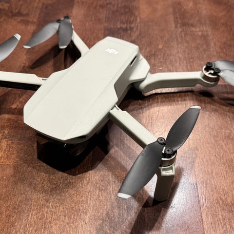 DJI Mavic Mini -kuvauskopteri. Paketissa näkyy kopteri, kauko-ohjain, kolme akkua, laturi, potkurisuojat, varapotkureita sekä useita kaapeleita ohjaimen ja puhelimen liittämiseen. Sopii ilmakuvaamiseen ja videointiin kevyen painonsa ja pienen kokonsa ansiosta.