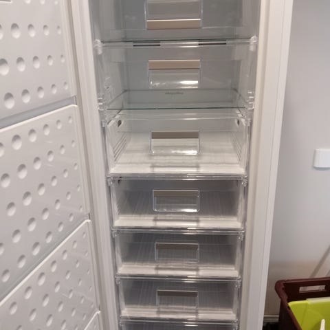 Siemens kaappipakastin. Useita läpinäkyviä pakastuslaatikoita ja hyllyjä elintarvikkeiden säilytykseen. Etupaneelissa Siemens-logo, ovessa pitkä pystysuuntainen kahva. Soveltuu pakasteiden säilytykseen kotitaloudessa tai varastotilassa. Yhdessä laatikossa näkyvissä halkeama. Ollut käytössä noin 5v meidän arkieteisessä. Myyntiin suoraan käytöstä. Nouto Laukaasta.