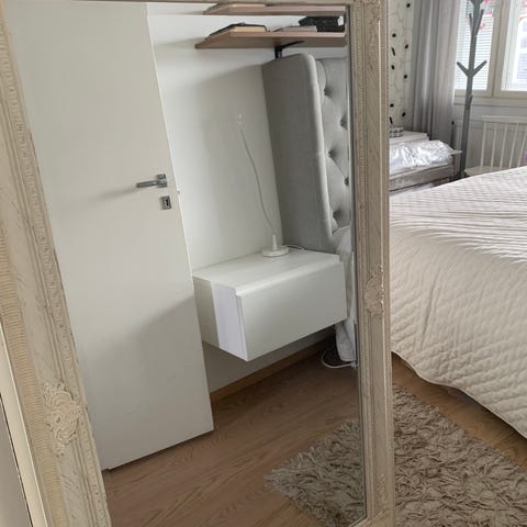 Kookas peili. Kehys massiivipuuta. Voi kiinnittää pystyyn tai vaakatasoon. Mitat kuvissa. Vain haku onnistuu.