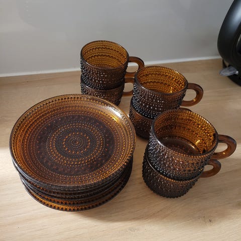 Myydään 2 pakkausta Nuutajärven kastehelmi lautasia. Yhteensä 12 kappaletta. Kaikissa lautasissa tarrat. Lautasen halkaisija 14 cm. Alkuperäiset pakkaukset. Pakkausten liimaukset auenneet, muuten ehyet. Yhteensä 100e.
