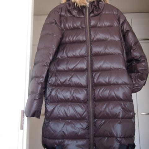 iBlues ( Max Mara konsernia) naisten talvitakki, koko 38 tai US 8 musta untuvatakki, jossa aitoa turkista edessä, helmassa ja kauluksessa. Neppari ja solkikiinnitys. Takissa on etutaskut vetoketjuilla.
