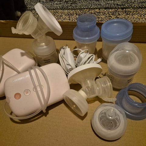 Philips avent rintapumppu, maidonlämmitin ja tuttipulloja