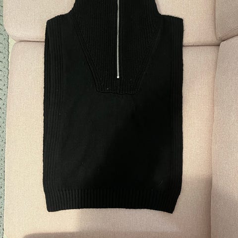 Uutta vastaava kauluri, polyester & akryyl & villa, pituus 54cm hartiasta alas, leveys 39cm.