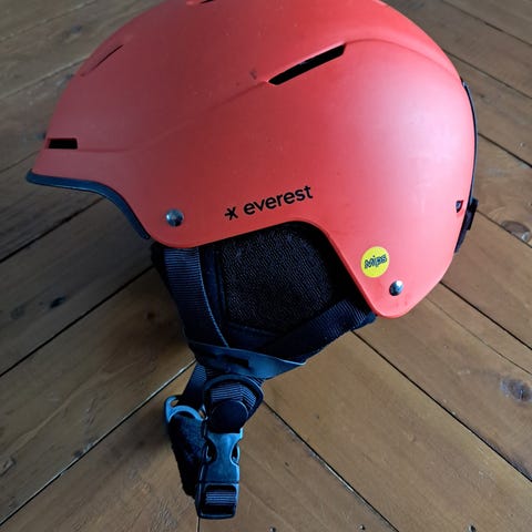 Everest laskettelukypärä integroidulla visiirillä. Koko M/L, kokoalue 55–58 cm. Kypärässä on valkoinen kuori, irrotettavat korvapalat ja pehmustettu leukahihna pikasoljella. Visiiri on peilattu ja tummennettu, tarkoitettu lasketteluun ja lumilautailuun. Kypärä on CE-hyväksytty ja siinä on MIPS-merkintä. Soveltuu nuorelle tai aikuiselle