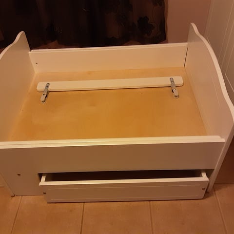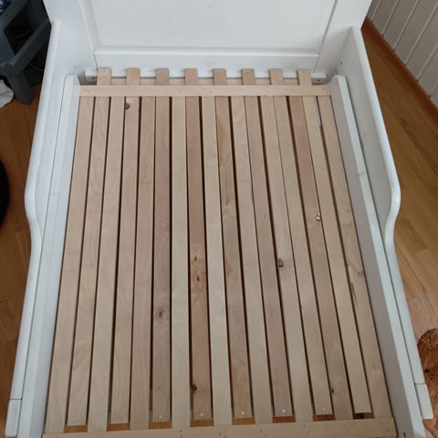 Sänky on purettu valmiiksi osiin kuljetuksen helpottamiseksi.