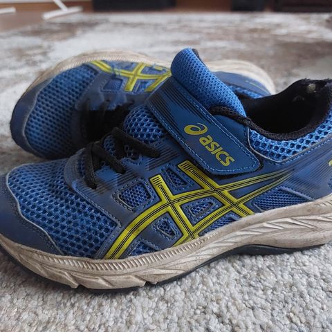 Asics lasten kengät, koko 33. Väri musta-oranssi, unisex-malli. Nauhakiinnitys. Sopivat arki- ja harrastekäyttöön lapsille, joille kengän koko 33 on sopiva.