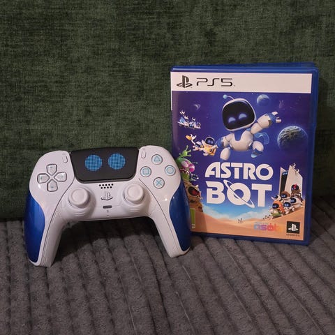 Myynnissä Playstation 5 peli Astro Bot. Peli ei ole VR julkaisu, vaan ihan tavallisesti pelattava peli PS5 konsolille.