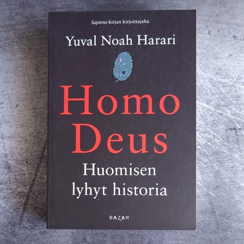 Yuval Noah Hararin Homo Deus: A Brief History of Tomorrow on englanninkielinen tietokirja. Kirja käsittelee ihmiskunnan tulevaisuuden mahdollisia kehityssuuntia ja teknologian, tieteen sekä yhteiskunnallisten muutosten vaikutuksia. Nidottu/pokkari- tai kovakantinen painos riippuen myytävästä kappaleesta. Soveltuu lukijalle, jota kiinnostavat historia, filosofia ja tulevaisuudentutkimus englanniksi.