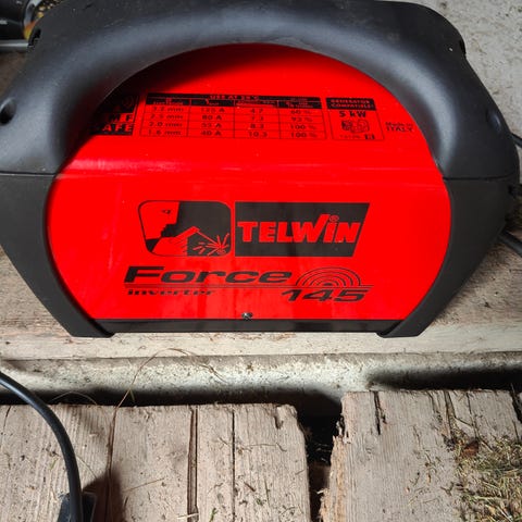 Toimiva kone. Mukaan saa 16A voimavirta kaapelin ja lisäksi 2.5/3.2 puikkoja