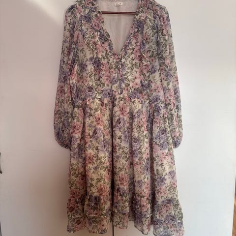 Romanttinen ja kaunis Newbien mekko koossa L, mielestäni koko on ennemminkin L-XL. Hyväkuntoinen, ei reikiä tai tahroja. Myös nouto Järvenpään Lepolasta.