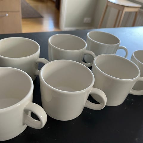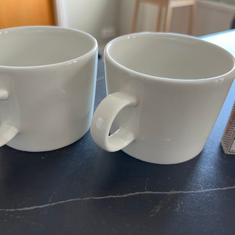 Arabia Teema 2dl kaadin valkoinen posliini. Pieni kaadin, jossa on kaatonokka ja korva.