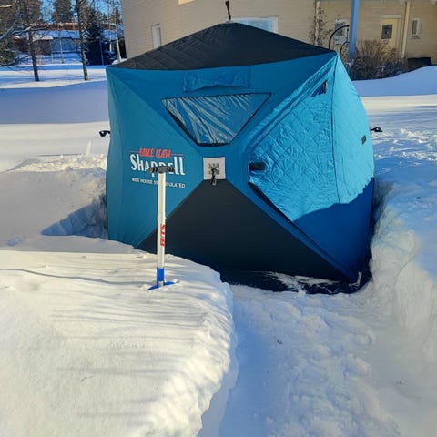 10€ päivä, 25€ viikonloppu. Löytyy myös pilkkiteltta, lumikenkiä ja metsäsuksia jos tahtoo kunnon reissun käydä.