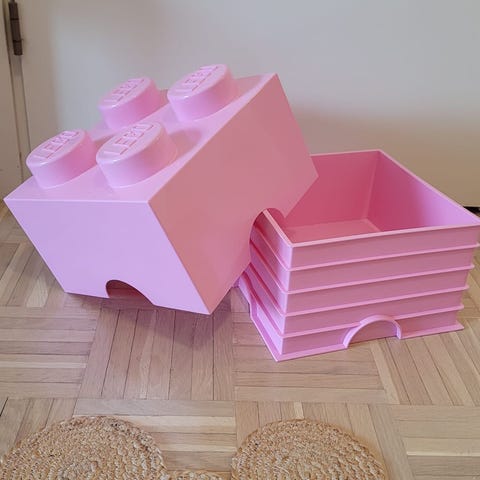 Lego säilytyslaatikko oranssi, saatavilla myös muita värejä. Hinta 3€ yhdelle laatikolle.