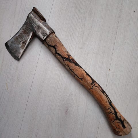 Halkokirveskirves, jossa puuvarsi ja maalattu teräosa. varressa punaista maalia. Lisäksi mukana irrallinen kirveenpää ilman vartta. Tuote soveltuu puutöihin tai kunnostusprojektiin käyttäjän tarpeen mukaan. Halkokirves todettu käytössä ainoaksi Oikein muotoillun terän ansiosta ei tartu ja halkee. Terät on juuri teroitettu. Yht. 60€