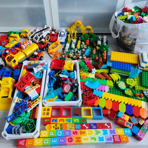Kuvassa näkyvät alustat sekä n 7kg duploja. Sis. paljon eri eiläimiä, ukkeleita, kuorma-auto, juna, veturi. Kaikki yht. 70e. Mieluiten nouto Hannunniitystä, mutta onnistuu myös postitus.