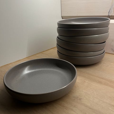Granit liikkeestä ostetut vaniljan valkoiset massiiviset lautaset, kevyesti pilkullista keramiikkaa, kuin vaniljamaustetta. Lautasten pinnassa on kohokuvioitu, rengasmainen kuvio ja pohjassa korotettu rengas, joka vakauttaa lautasta pöydällä. Sopivat arki- ja kattauksissa käytettäviksi ruokalautasiksi.