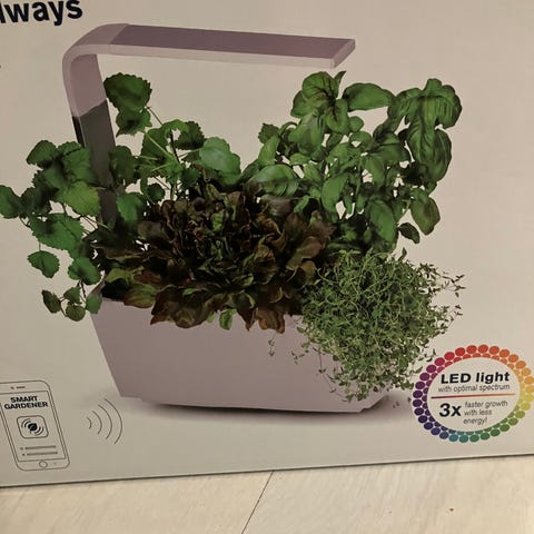 Tregren Kitchen Garden T6 on sisäpuutarhalaite, jossa on integroitu LED‑kasvivalo. Laite on valkoinen ja tarkoitettu yrttien ja muiden pienten kasvien kasvattamiseen sisätiloissa. Mallin merkintä on T6 ja virtalähteen tulo on 13,5 V DC, 0,65 A. Laitteessa on istutusallas sekä yläpuolinen valokaari, joka ohjaa valon kasveille. Soveltuu esimerkiksi keittiöön tai muihin sisätiloihin, joissa halutaan kasvattaa kasveja keinovalon avulla. Sopii kuudelle yrtille. Postitan ostajan maksaessa postituskulut